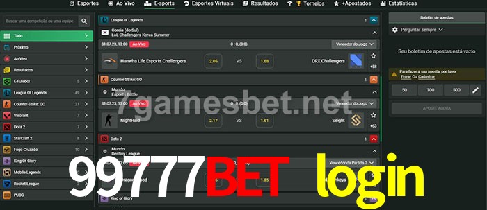 O 99777bet login oferece uma grande seleção de opções de apostas em e-sports com probabilidades competitivas